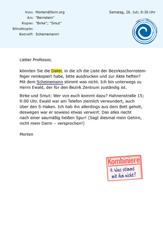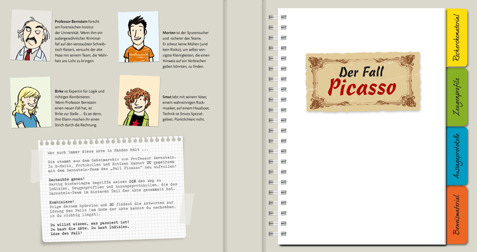 Serie von 4 Krimis im Ringordner | Gestaltung von E-Mails, Aussageprotokollen usw., Photoshop-Manipulationen der Beweismittel