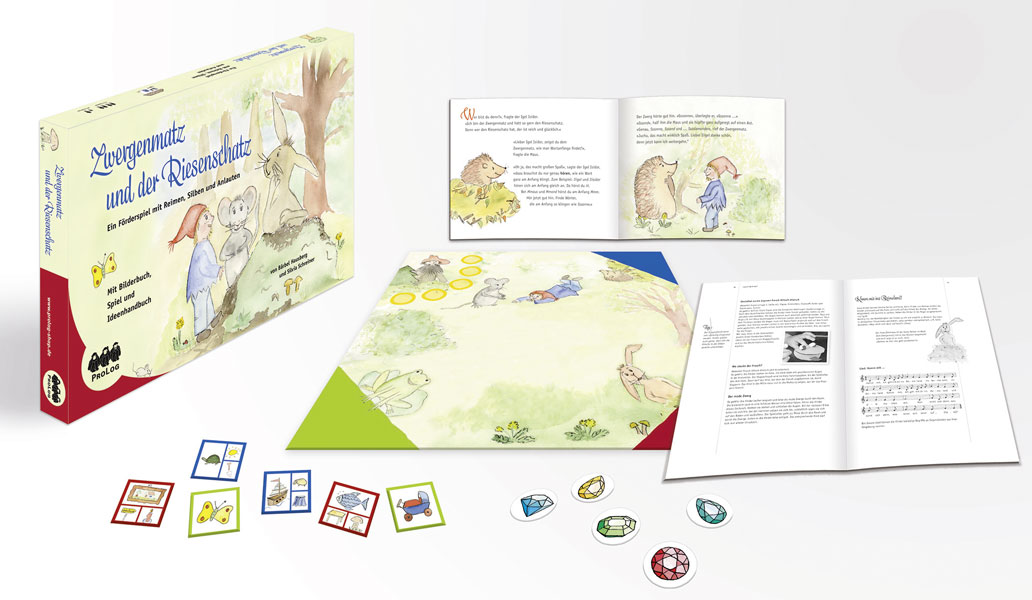 Layout/Gestaltung von Schriftzug, Schachtel, Praxisbuch, Mitmachbuch, Spielfiguren, Karten und Anleitung